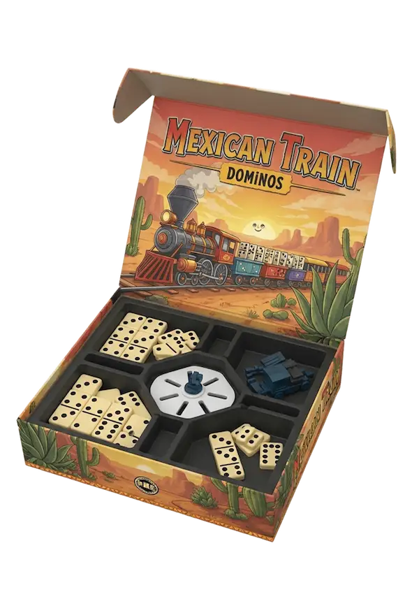 Como especialistas en juegos de mesa, nos gusta mucho el dominó Mexican Train. Principalmente porque es un juego rápido que permite que los jugadores nuevos entiendan las reglas de inmediato. Eso hace que en pocas rondas el juego se vuelva mucho más estratégico y se genere así una competición amistosa.