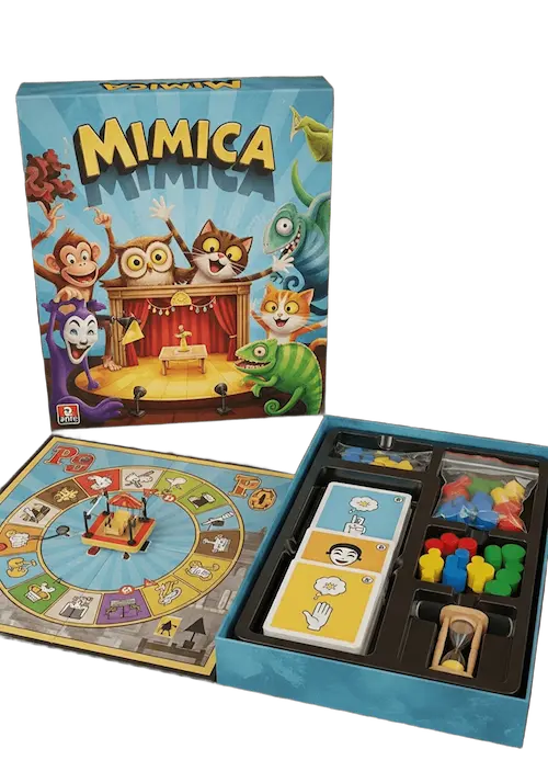 Mímica es un juego de mesa clásico lleno de acción que se basa en gestos, expresiones y en la creatividad. Es un juego ideal para grupos o reuniones familiares ya que se garantizan las risas y la interacción entre todos.